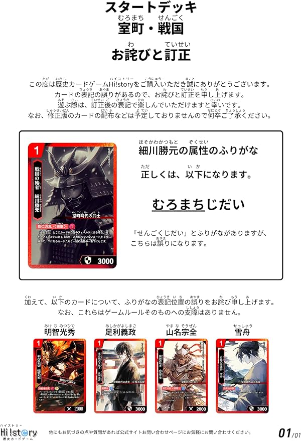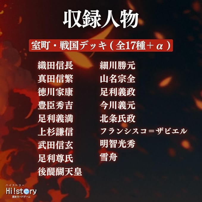◆内容物 戦国デッキ 1 (32枚) 説明カード (13枚) ◆収録人物一覧は公式HPからご覧ください
