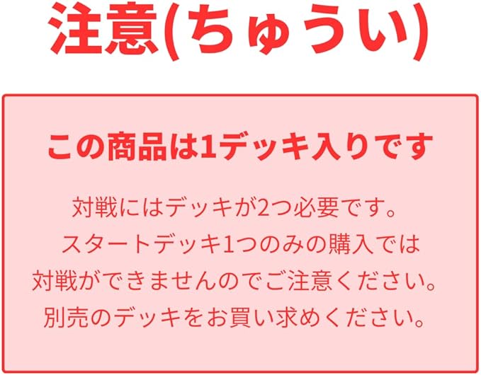 ※この商品はトレーディングカードゲームです。1デッキのみを購入しても他のデッキを持っている人がいないとすぐには遊べません。ご家族で遊ぶ場合は複数ご購入いただくか、2デッキが入った「スタートデッキセット」をご購入ください。