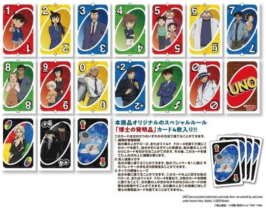 みんなで楽しめるカードゲーム『ウノ』から、「名探偵コナン」が登場!オリジナルのスペシャルルールカードを4枚収録し、一味変わった、より一層楽しめる特別なウノです。