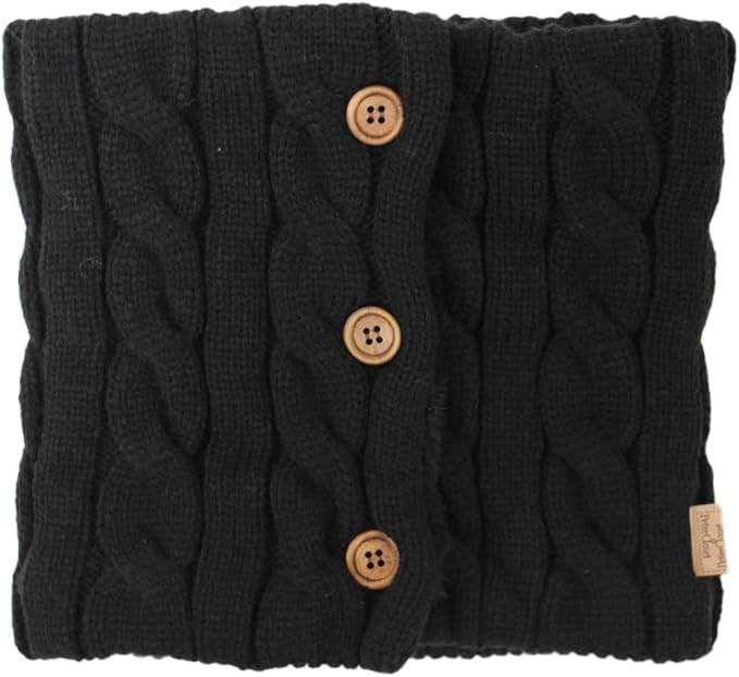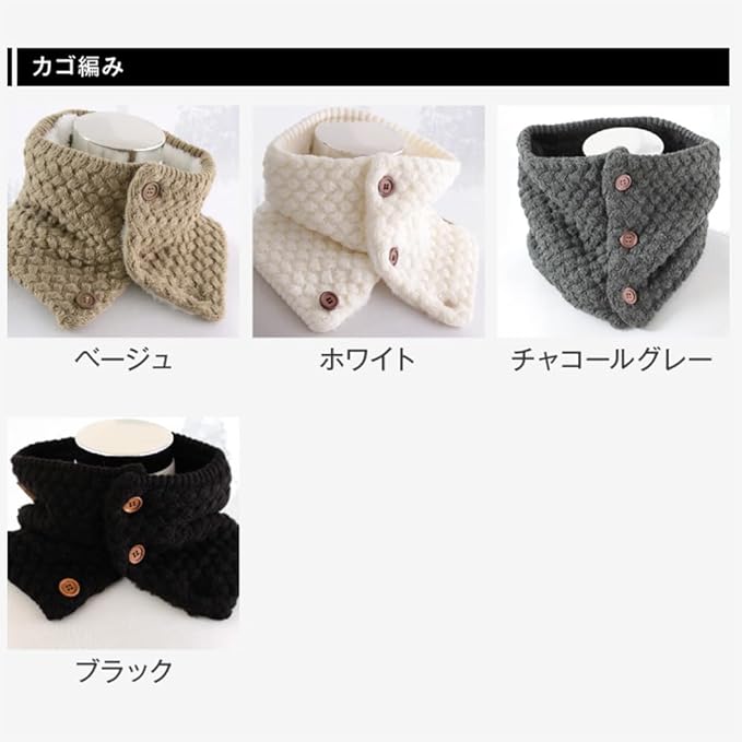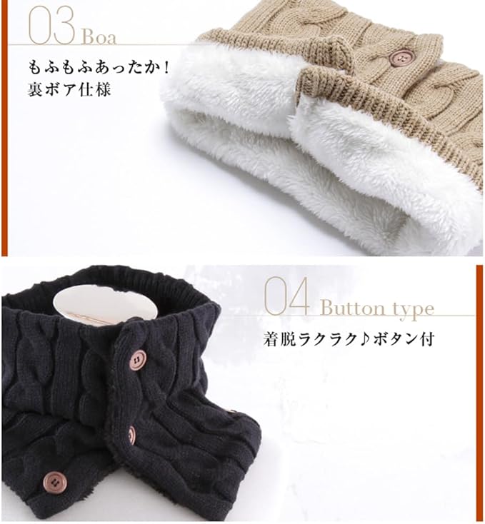 [GlovesDEPO] あったか裏ボア ボタン付きネックウォーマー ケーブル編み&カゴ編み