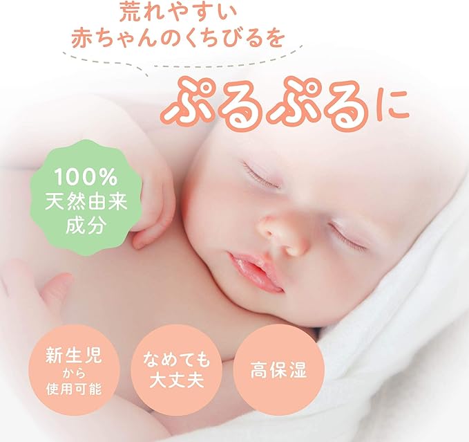 POINT2:なめても大丈夫!100%天然由来成分…天然の高保湿成分をたっぷり配合。乾燥しやすいお口まわりをしっとり保湿し、くちびる荒れを防ぎます。スクワラン・ミツロウ※・オリーブ果実油・マルーラ種子油・サルビアヒスパニカ種子油・テリハボク種子油※ハチミツとは異なる成分のためボツリヌス菌の心配はありません。滅菌処理もしておりますので、新生児からお使いいただけます。※全て保湿成分として