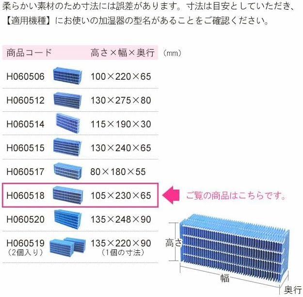 ■抗菌気化フィルター [ H060509 ] と [ H060511 ] は [ H060518 ] に統合となりました。