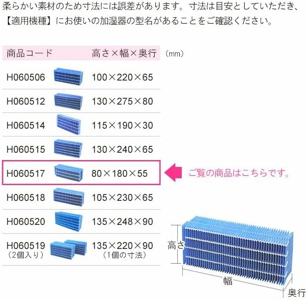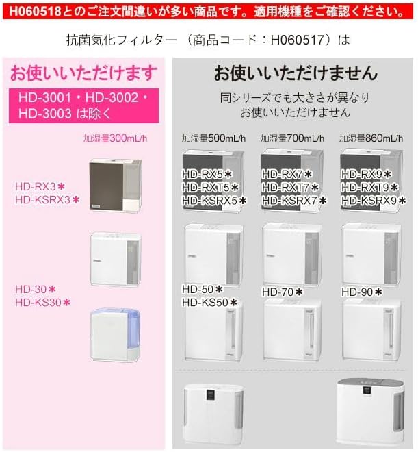 ■抗菌気化フィルター [ H060507 ] と [ H060510 ] は [ H060517 ] に統合となりました。