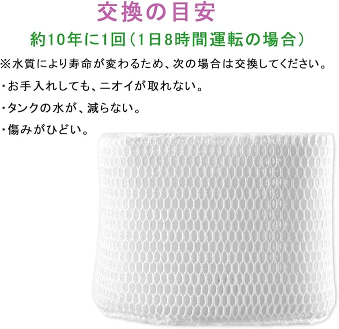 【交換の目安】交換の目安は10年です。使用環境や設置場所により交換時期は異なります。汚れが目立ち効果が落ちているようでしたら、速やかに交換することをおすすめいたします。