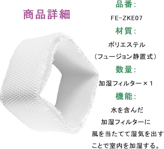 【交換品】加湿フィルターfe-zke07と互換性のある加湿空気清浄機用消耗品です。