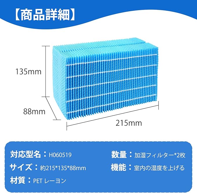 H060519 抗菌気化フィルター HD-152 HD-182 HD-242 HD-243 加湿器交換用フィルター 互換品(2枚入)