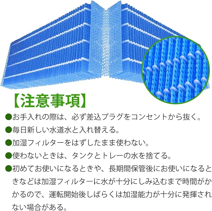 【お手入れの目安】2週間に1回。お手入れしても、においがしたり加湿量が少ないときは、加湿フィルターを交換してください。