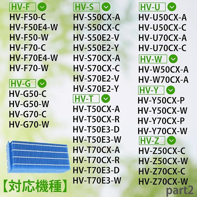 【材質】レーヨン・PET。抗菌・防カビ加工の加湿フィルターは、8シーズンの長寿命で、経済的です。形名: HV-FY5 / HV-FS5 。