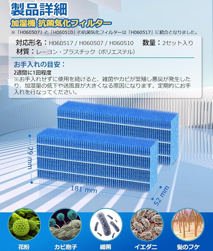 H060517 加湿フィルター H060507 抗菌気化フィルター H060510 ハイブリッド式加湿器用 互換品 【2枚入り】