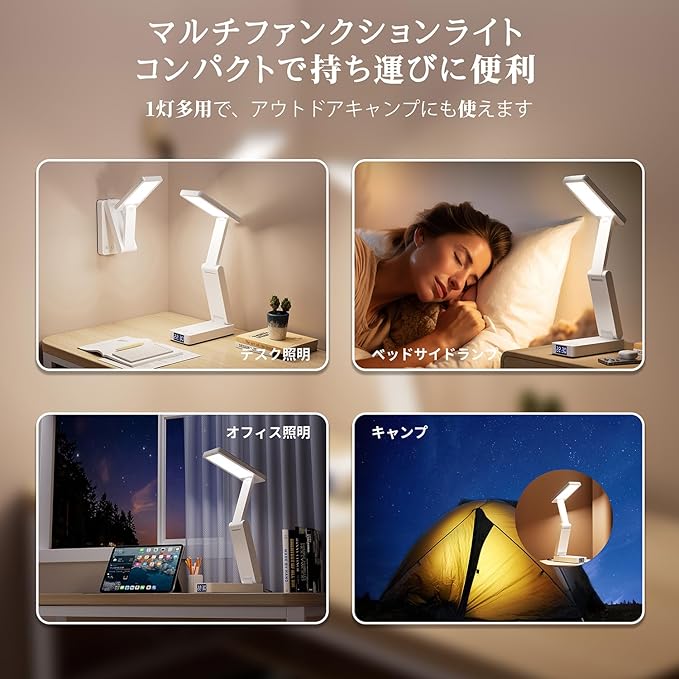 【折りたたみ式で省スペース】 折りたたみ式設計で収納時はコンパクトに。学習机やオフィスデスクを広々使えます。読書や仕事、オフィス、寝室用として、あらゆる生活シーンで活躍するコードレスデスクライトです。