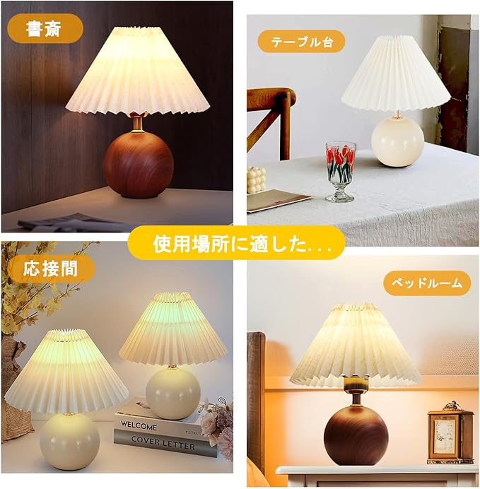 テーブルランプ 間接照明 スタンドライト ナイト 授乳ライト プリーツシェード 小型 かわいい コード式 女性 人気 陶磁ベース 誕生日プレゼント 新築祝い おしゃれ 補助照明器具 卓上ベッドサイド セラミックランプ 常夜灯 モダン ジャパニーズ (B-くるみ木色)