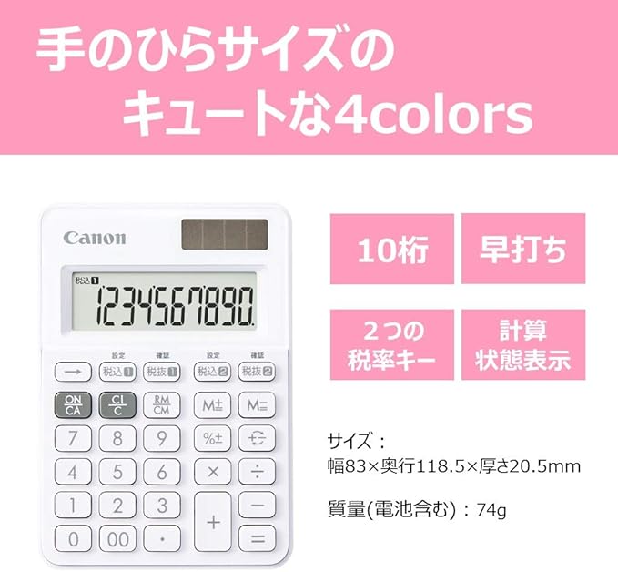 キヤノン カラフル電卓 LS-100WT-SW 10桁 ミニミニ卓上サイズ W税機能搭載