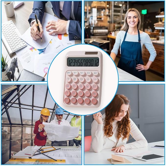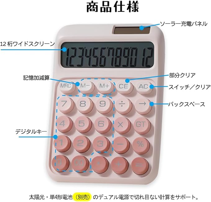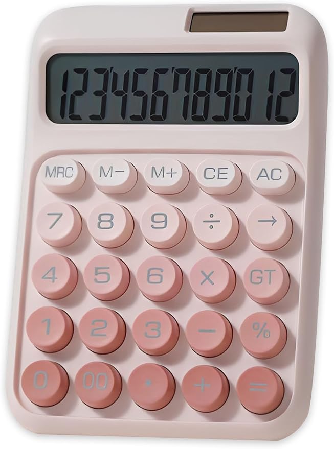 電卓 おしゃれ 12桁 計算機 かわいい 電卓 可愛い ソーラーと電池二重電源 大型ディスプレイ グラデーションカラー ミニ 丸ボタン メカニカルキーボード 持ち運び便利 滑り止め 税金会計 簿記 デスク オフィス 家庭 学校 ビジネス用(ピンク)