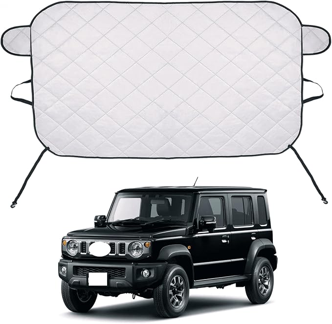 車用フロントガラスシート 2025新型 スズキ ジムニーノマド JC74型 フロントガラスカバー 凍結防止カバー 防雪 防霜 積雪対策 厚手4層構造 撥水加工 UVカット 日よけ 遮光断熱 四季兼用 耳挟み式盗難防止 折畳み収納 飛び石防止 黄砂・落葉・花粉対策 ワイパー保護