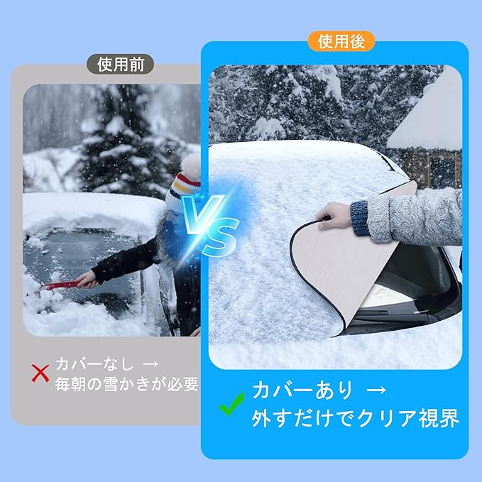 【耐傷・防火・防凍・高耐久性】本製品は「耐スクラッチ性・防火性能・防凍効果・長寿命」という4つの特性を備え、日常の過酷な使用環境にも対応します。積雪や氷点下でもフロントガラスの凍結を防ぎ、炎天下や飛来物からも車体を守ります。フロントガラスカバーとして、過酷な気候条件でも安定した保護力を発揮します。