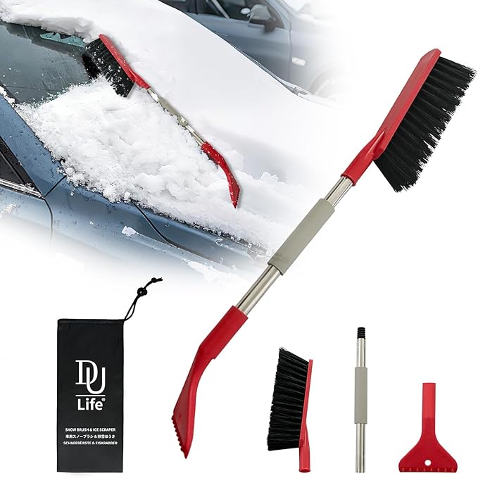 【1 本 4 季使える万能スノーブラシ!】秋の落ち葉、春の花粉、夏のホコリをサッと払い! 車はもちろん、玄関ガラス・ベランダもスッキリに仕上げる。除雪後は水洗い OK、スッと縮めればトランクの隙間にも収まるコンパクト設計!年間を通じて「雪・ホコリ・葉」すべてを 1 本で処理,収納もラク!明日の朝 5 分長く寝れる「時間節約神器」を、今すぐトランクに仕舞おう!