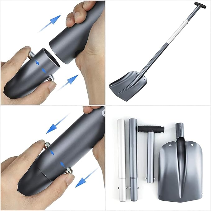 【使いやすい】 除雪シャベルは4つの部分に分かれており、使用シナリオに応じて長さを調整できます。組み立て後の長さは54cm~108cm(大人の肘に近い)で、他のシャベルの長さが80cm(大人の太ももに近い)に比べて使いやすく、腰を痛めにくいです。
