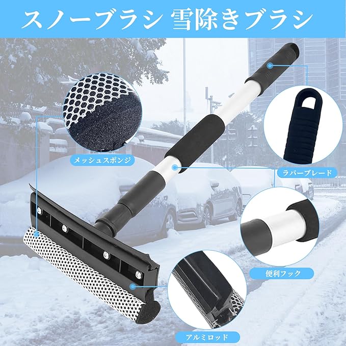 スノーブラシ 雪除きブラシ 除雪ブラシ カー用 76x20x8 mm 延長可能 アイススクレーパーとグリップ付き