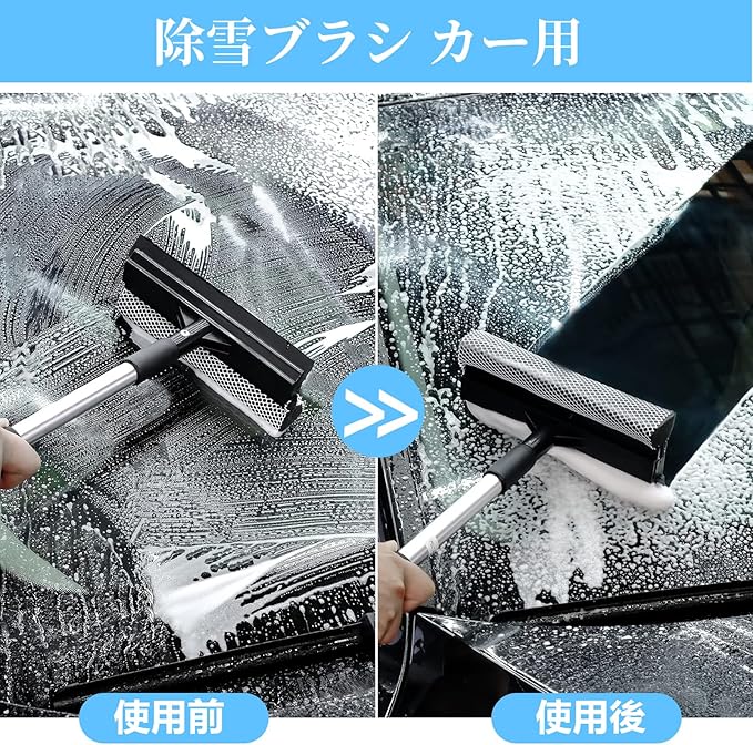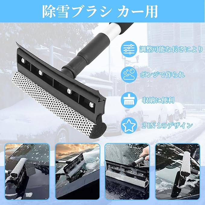 2 in 1のデザイン:大きくて厚いスポンジスノーブラシで車の雪を簡単に取り除き、別の側面にあるアイススクレーパーでフロントガラスや窓から氷や霜を取り除きます。