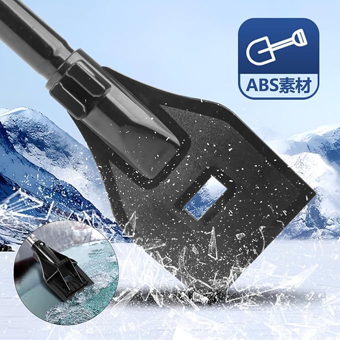 【改良!材料強度のアップグレード】ポールはステンレス製でスポンジが巻かれているので冬でも使いやすいです。ショベルヘッドは高強度のABS素材で作られています、上部はアルミニウム合金で包まれているため、耐久性があります。スノーブラシはナイロン毛で作られています、360度回転可能です、スノーブラシ 車 傷つかない。
