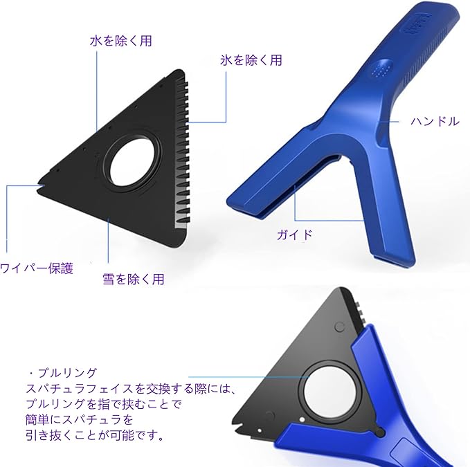 ★「3-IN-1車用雪かき」積雪を取り除く用、水を取り除く用、氷を取り除く用、3タイプがあります。