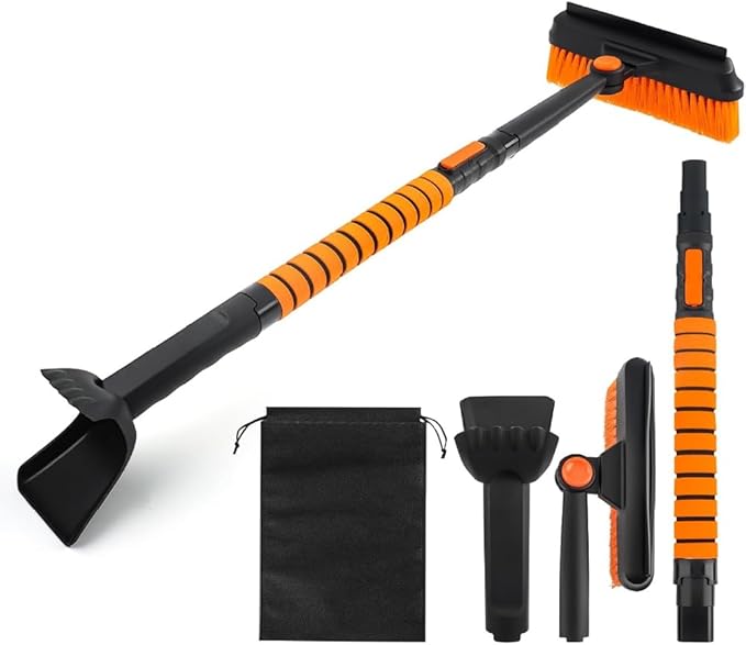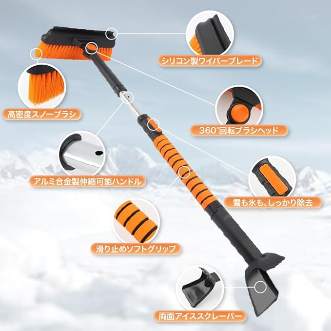 スノーブラシ 車 除雪ブラシ 雪かき 6 in 1 多機能 車用スノーブラシ 雪対応 アイススクレーパー 伸縮式アルミハンドル 雪対策自動車 トラック SUVに対応 スクイージ 収納パック付き