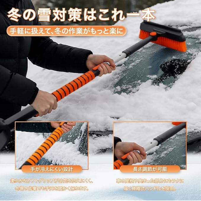 ⭐【高品質で長持ち】アルミ合金製の棒、耐久性が高いABSハンドル、固形PC素材の毛はスノーブラシの頑丈さを高めて製品の長持ちを実現します。EVAコットン材のハンドルは冬でもさわり心地の良いグリップを保証し、手が冷えずに除雪作業を簡単にできます。