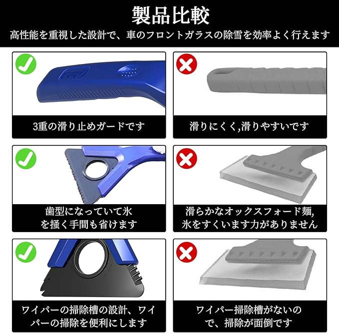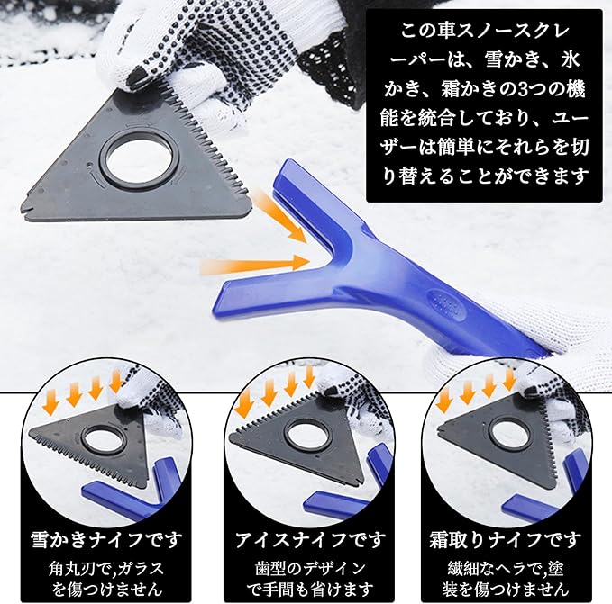【車スノースクレーパー】スタイリッシュなブルーのデザインの車スノースクレーパーは、実用的であるだけでなく、見た目も魅力的です。車のガラスについた霜や氷を簡単に取り除くことができるように設計されています。その高性能は、氷や雪を素早く除去する能力に反映されているだけでなく、運転中に車の塗装やガラスに損傷を与えず、安全で効率的な除氷体験を提供します。