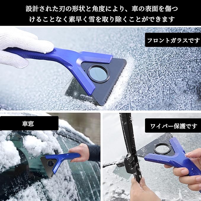 車スノースクレーパー アイススクレーパー 車用雪かき 霜取りへら ABS 滑り止めハンドル 小型便利 高性能 軽量 雪 結氷 除去用具 車雪落とし ボディフロントガラス用 冷凍庫用 霜取りツール ウインターグッズ(青)
