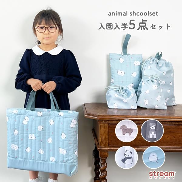 ストリームマーケット レッスンバッグ 入園入学 5点セット 女の子 男の子 入園準備 入学準備 シューズバッグ 袋 入園セット 入学セット 入園入学準備 シュナウザー シマエナガ パンダ トイプードル GE0966