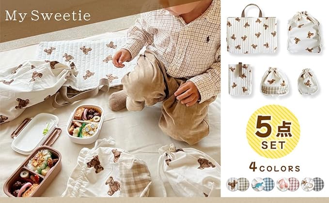 内容:レッスンバッグ、シューズケース、巾着袋(大中小)の5点セット