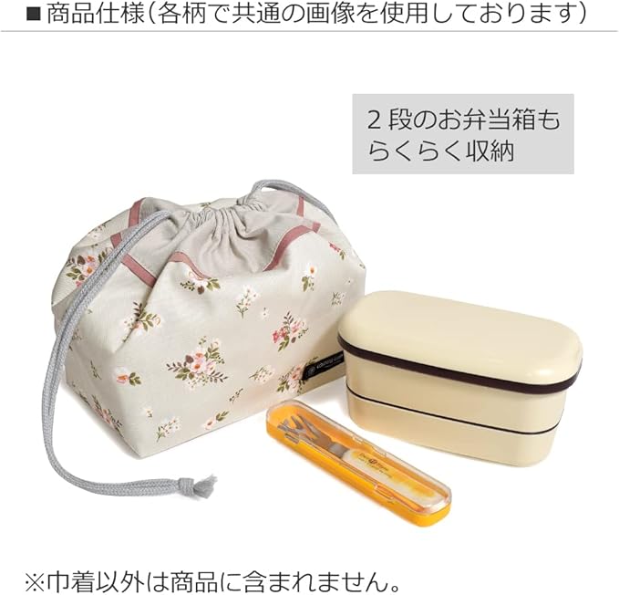 マチ付きで2段のお弁当箱、お箸やカトラリーケースも楽に収納できます。