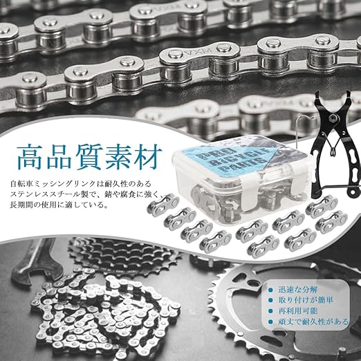 【素材】:自転車チェーンコネクターは高品質ステンレス製で、精密機械加工、高硬度、軽量、耐摩耗性、耐腐食性、耐久性に優れています。