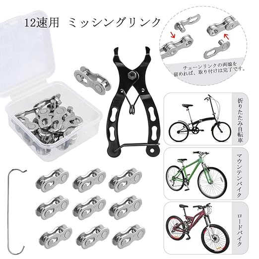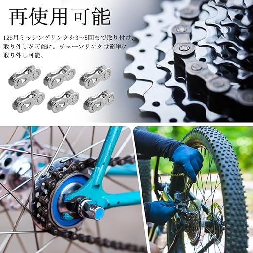 【再使用可能】12S用ミッシングリンクを3~5回まで取り付け、取り外しが可能に。チェーンリンクは簡単に取り外し可能。