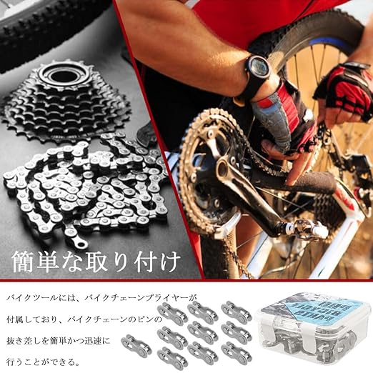 【使いやすい】:バイクツールには、バイクチェーンプライヤーが付属しており、バイクチェーンのピンの抜き差しを簡単かつ迅速に行うことができる。