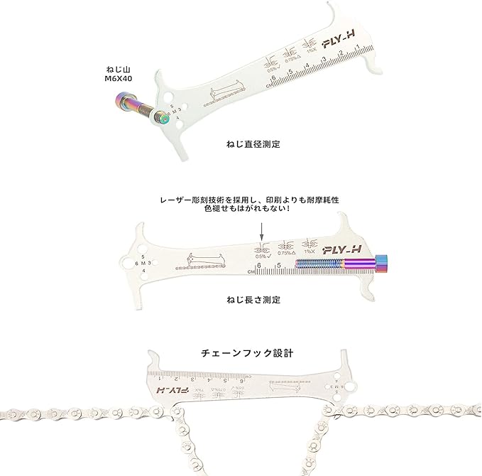 FLY_H チェーンカッター 自転車チェーンチェーンチェッカー 取り外しと取り付け +チェーンカッター+道路車 3-in-1 チェーン摩耗検出ゲージ (ネジ測定、チェーンジョイントクランプ機能付き)、 マウンテンバイク チェーン本 ほしゅようじょう ツール