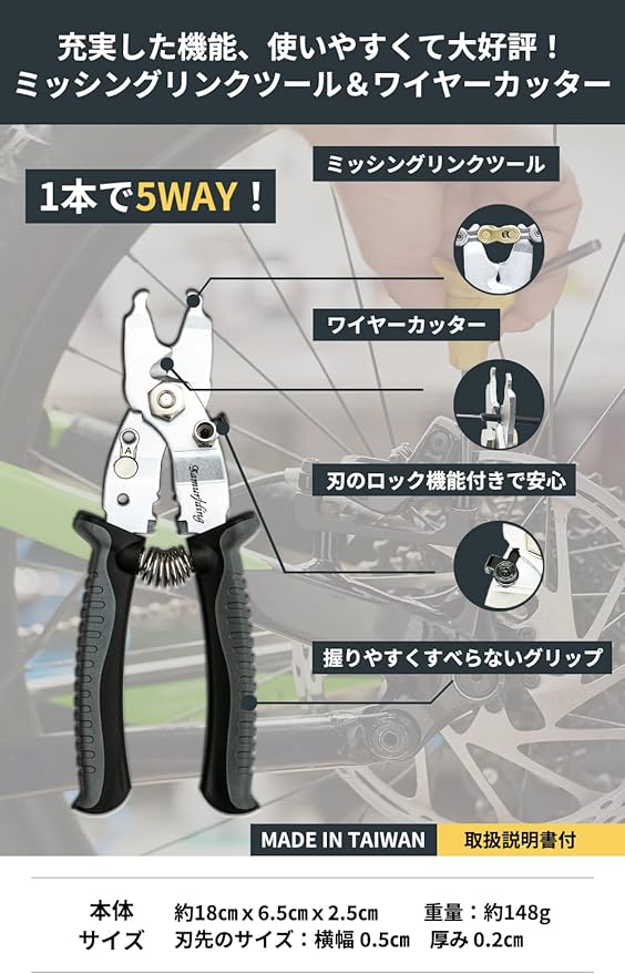 ♂️【高品質な台湾製】自転車 工具 ミッシングリンクツール&ワイヤーカッター SIG-MT002 ♂️【仕様詳細】本体サイズ:約18㎝x6.5㎝x2.5㎝ 刃先サイズ:横幅約0.5㎝ 厚み約0.2㎝ 重量:約148g