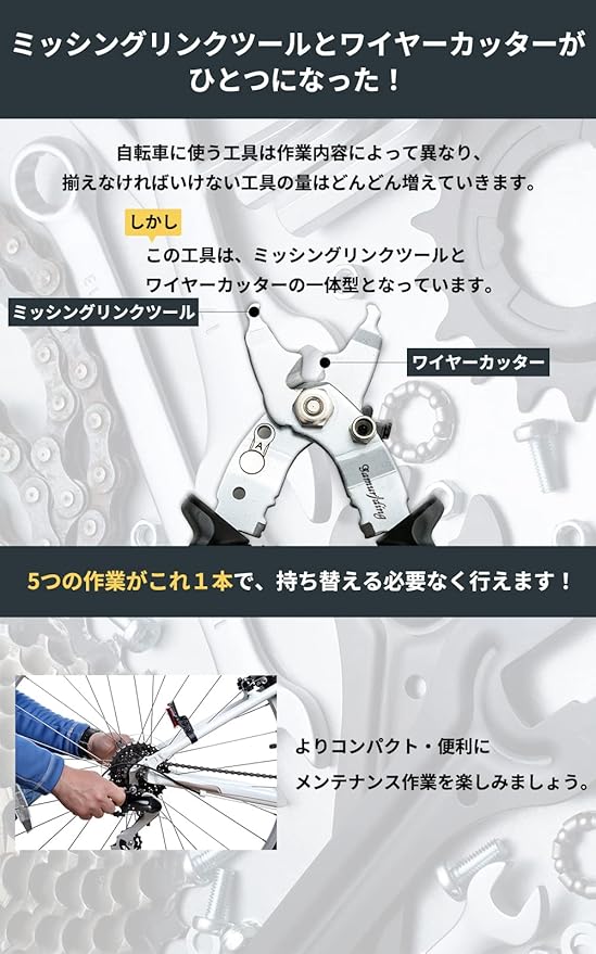♂️【ミッシングリンクツール一体型ワイヤーカッター】ケーブル交換、チェーンのメンテナンスに必須の自転車工具です。 シマノ・KMC製ミッシングリンクの取り外し、取り付けに対応しています。