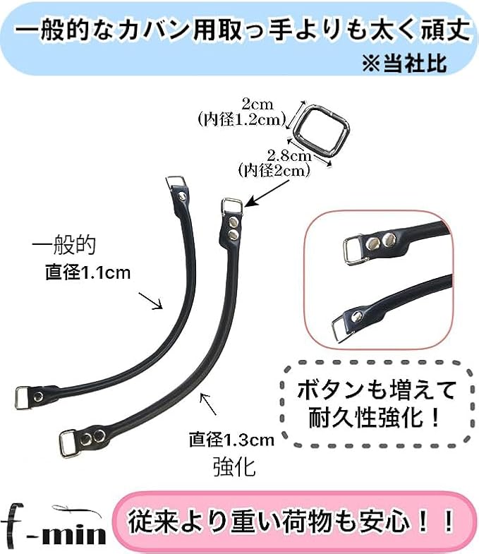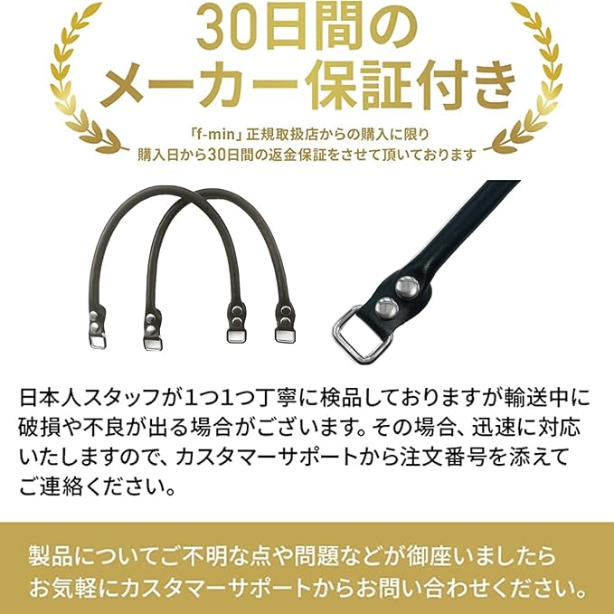 [f-min] 頑丈 かばん 持ち手 (本革) 38cm 50cm 60cm2層レザー 黒 着脱可能 (ブラック) (60cm)