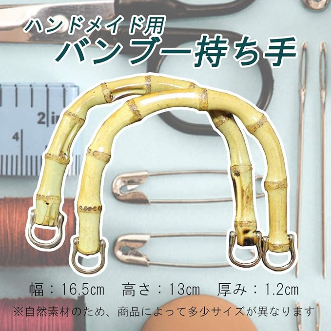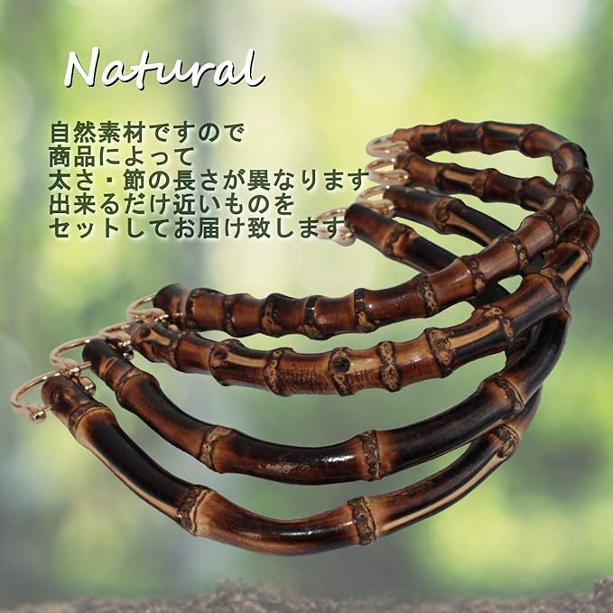 バンブー素材。焼きによる発色を活かしたブラウンカラーの持ち手です。上品な色合いで、高級感あるバッグに変身!お手持ちのバッグのリメイクや、手作りバッグのアクセントに最適です。