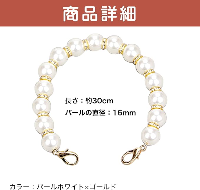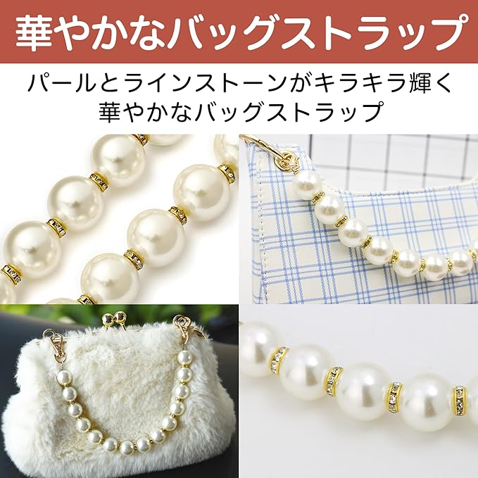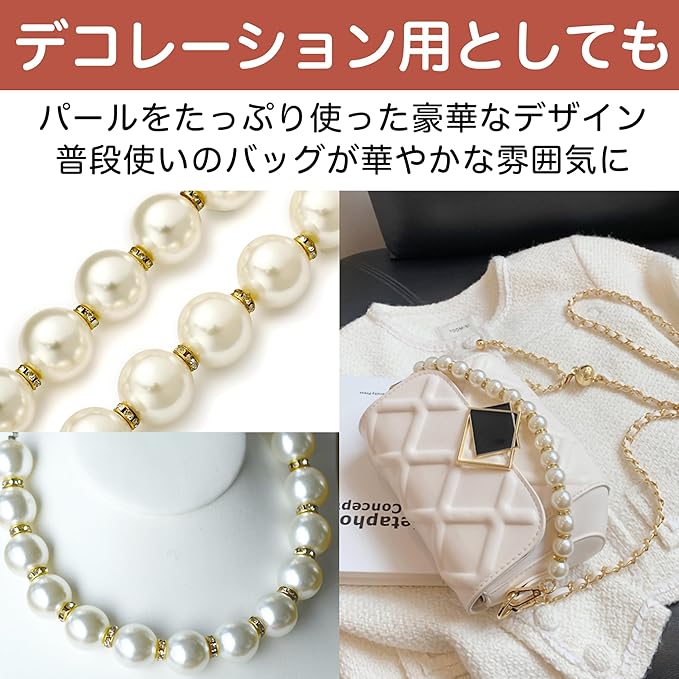デコレーション用としても:大きめのパールをたっぷり使ったゴージャスなデザインのバッグストラップなので、いつもお使いのバッグに取り付けるだけで華やかな雰囲気にデコレーションすることができます。