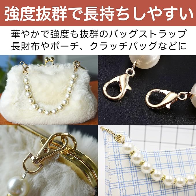 強度抜群で長持ちしやすい:華やかなアクセサリーのようなバッグストラップですが、強度も抜群ですので、長持ちしやすいです。長財布やポーチ、クラッチバッグなどに取り付けたりするのもよいでしょう。