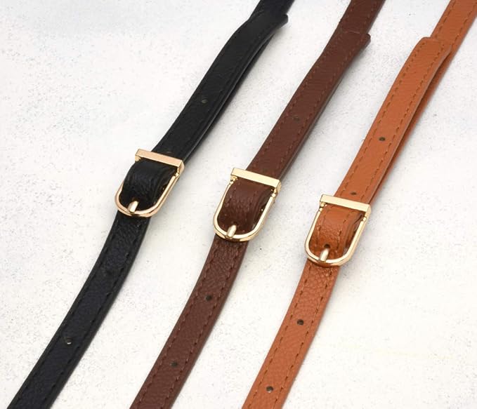 各種のショルダーバッグ製作用のPUレザー製ショルダーストラップ 3本セットです。全長はおよそ109~120cmで3cmごとに調節可能です。幅は約12mm、重さは約42gです。ゴールドのナスカンとバックルを装着しています。ナスカンはディテールが多少異なるものが混在していることがありますのでご了承ください。