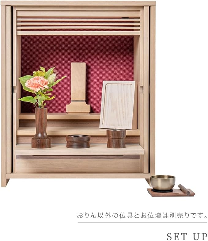 【おりん】:真鍮、色付け加工【おりん敷】:フェルト【台座・りん棒】:ウォールナット