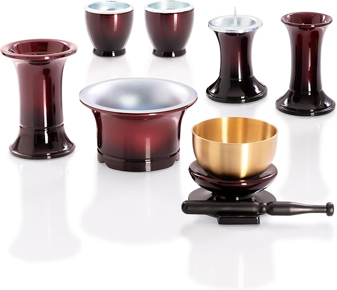 Tomoka 仏具 セット 仏具セット リンセット おりんセット おしゃれ ワイン レッド 湯茶器 仏飯器 花立 花瓶 香炉 灯立 線香差 仏具 セット ミニ 小 モダン【モダン仏具セット そよ風 ワイン+専用リン 7点セット】