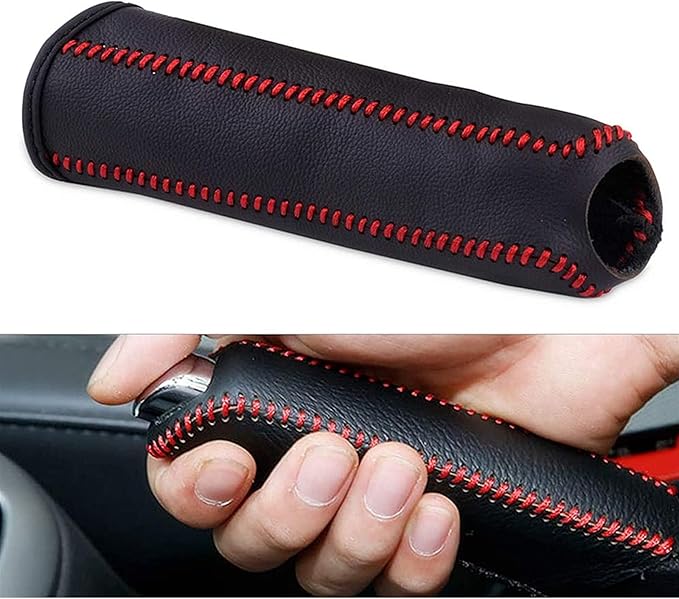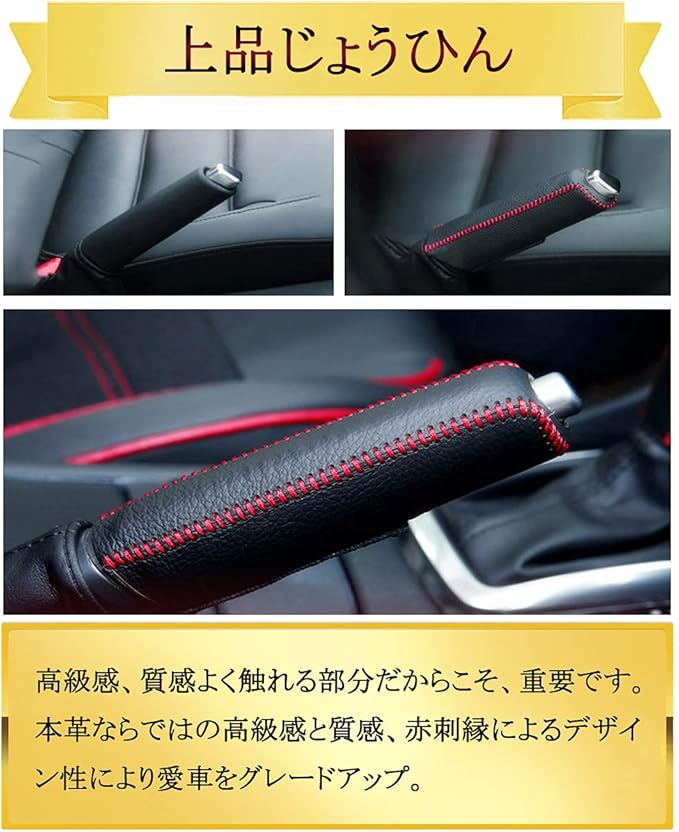 【高級感、質感】こだわりのデザイン性 高級車なのに、プラスチック製のブレーキレバーに本革カバーは必須。傷つきやすいプラスチックレバーを守ります。よく触れる部分だからこそ、重要です。 本革ならではの高級感と質感、赤刺繍によるデザイン性により愛車をグレードアップ。