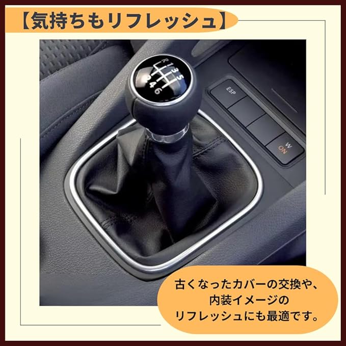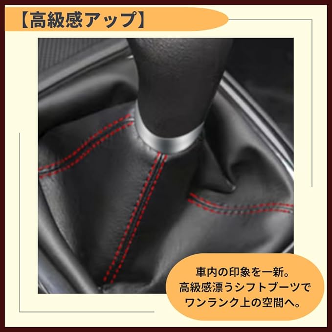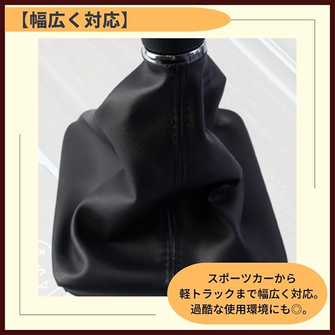【気持ちもリフレッシュ】古くなったカバーの交換や、内装イメージのリフレッシュにも最適です。【高級感アップ】車内の印象を一新。高級感漂うシフトブーツでワンランク上の空間へ。【高品質な素材を使用】肌触りの良いPUレザーを採用。柔軟性と耐久性を兼ね備えた素材です。【幅広く対応】スポーツカーから軽トラックまで幅広く対応。過酷な使用環境にも◎。