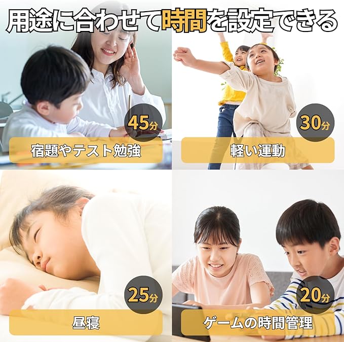 【多機能設定】カスタマイズ可能な時間設定で、ポモドーロテクニックなどの学習管理に最適です