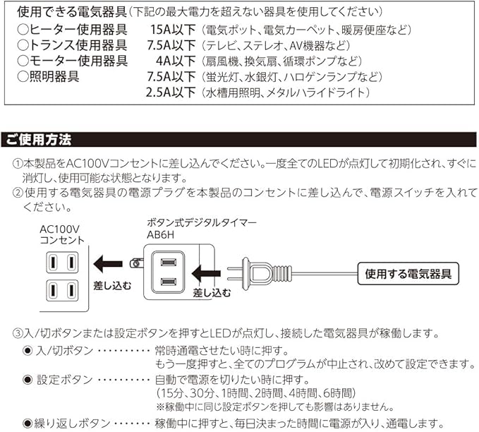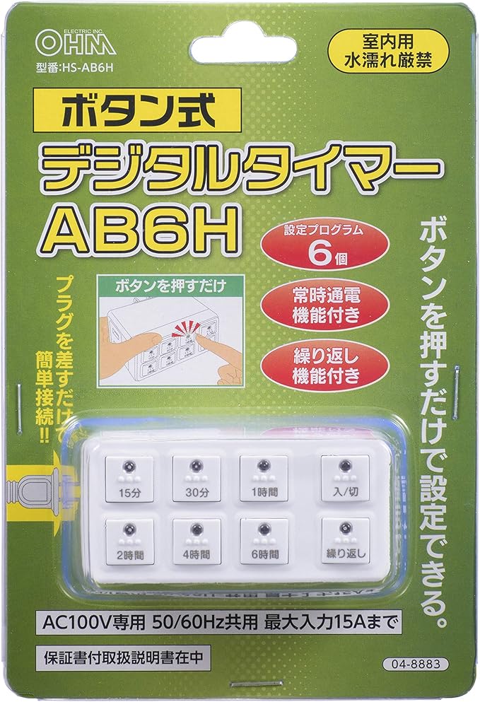 オーム電機 ボタン式デジタルタイマー タイマーコンセント AB6H HS-AB6H 04-8883
