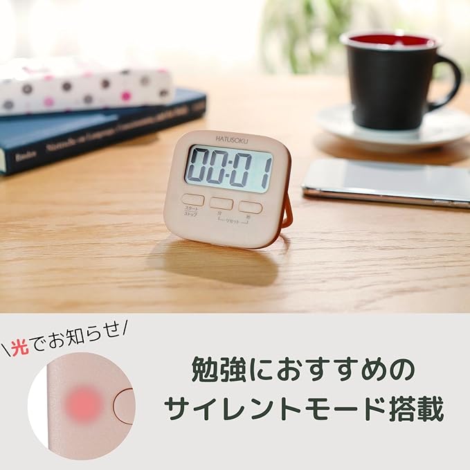 【サイレントモード搭載】光で時間お知らせするサイレントモード搭載で、勉強タイマーや学習タイマーとしての活用、静かな場所での利用におすすめです。サイレントモードで設定する際、設定音はしません。